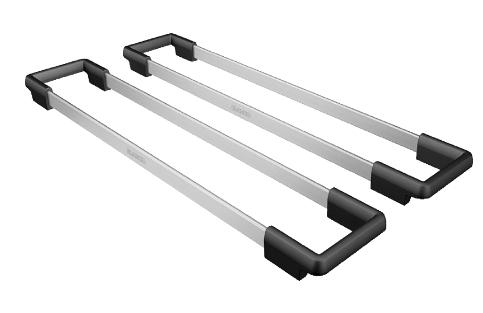 Funktionsskinnerne kan hænge i vasken og benyttes som afsætning eller til ophængning af klude, svampe mv.