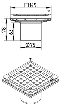 BLÜCHER Domestic-140 afløb for beton- og klinkegulve, med lodret Ø75mm udløb, lav model uden membranflange
