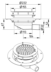 BLÜCHER Domestic-150 miniafløb for vinylgulve, med vandret Ø32mm udløb.