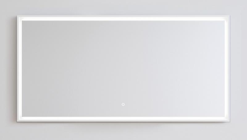 Spejl med mathvid ramme og LED lys med Touch-funktion. Spejlet har anti-dug-funktion, som reducere dug på spejlet, efter badet samt lysfarve-regulering.