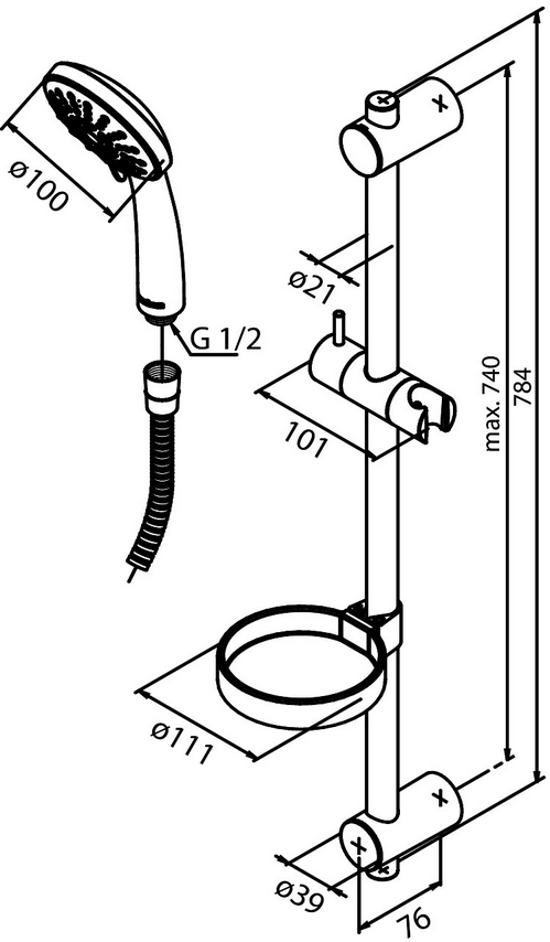 Damixa Brusersæt Fair Jet Flex med justerbar brusestang