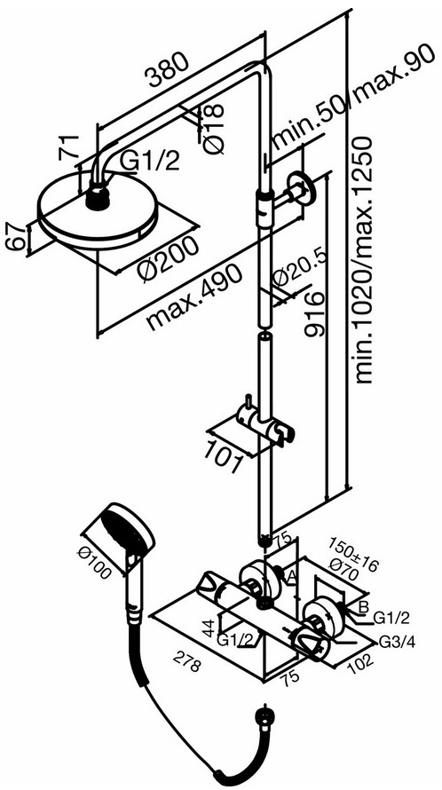 Der er alt hvad du skal bruge for at få et helt brusesystem, også termostatarmaturet, rosetter og forskruninger. Termostaten er den flotte Damixa Clover der følger med, så er du sikret et super flot look der matcher stort set alle badeværelser. Der er en omskifter på så du nemt kan skifte mellem hovedbruser eller håndbruser.