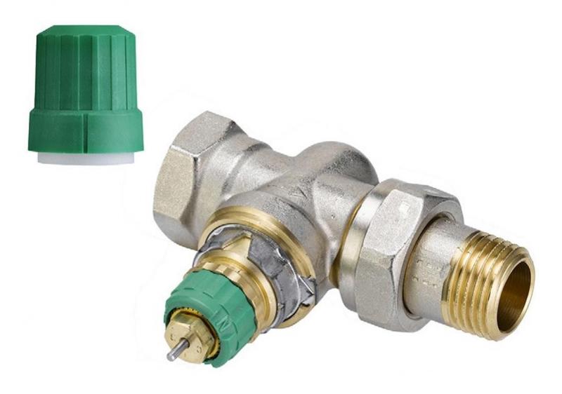RA-DV har indbygget trykregulator som holder et konstant differenstryk på 0,1 bar over ventilen, så det indstillede flow opretholdes.Ventilen har integreret flowbegrænser, og grøn dækhætte til foreløbig regulering. Anvendes til to-strengede anlæg.