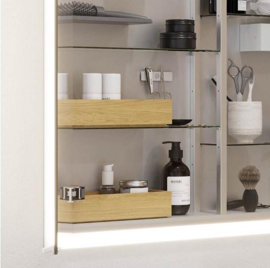 Dansani Luna indretningspakke til overskab/spejlskab Denne praktiske indretningspakke er den perfekte løsning til dit overskab eller spejlskab på badeværelset. Pakken består af to opbevaringsbokse med ét rum hver, der giver dig mulighed for at organisere dine småting på en enkel og effektiv måde, samt en fleksibel rumdeler. Boksene kan tages ud og placeres på håndvasken eller andre flader, når du har brug for nem adgang til dine produkter, og sættes derefter hurtigt tilbage i skabet, når de ikke er i brug. Med den fleksible rumdeler kan du yderligere tilpasse opbevaringen efter dine behov og holde styr på mindre ting som kosmetik, små flasker eller andre badeværelsesartikler. Denne løsning gør det muligt at holde orden i dit skab, samtidig med at du nemt kan tilpasse indretningen alt efter, hvad du behøver på badeværelset. |