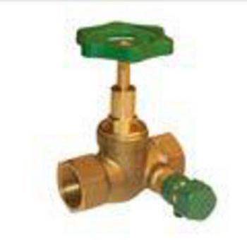 Sædeventil med aftap og håndhjul Materiale: Standardmessing Medie: Vand Temperatur: +90 C Tryk: Max. 10 bar Byggelængde: 92 mm Byggehøjde: 103 mm