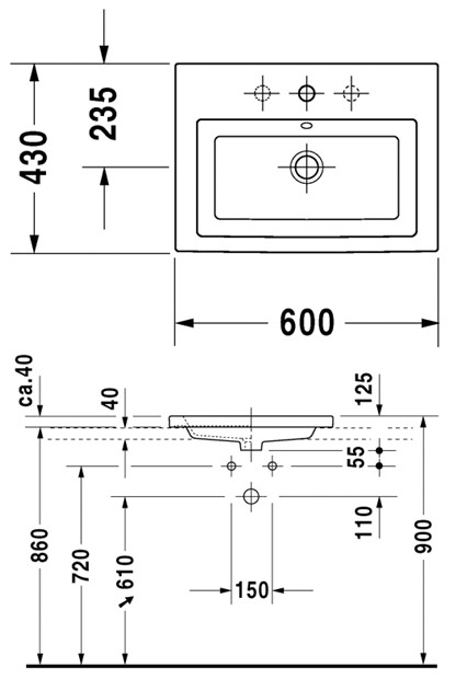 Duravit 2nd floor 60 håndvask t/nedfældning