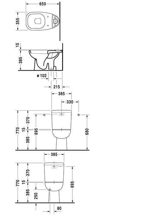 Duravit D-code gulvstående kombinations toilet 211101 med S-lås, uden cisterne og sæde.