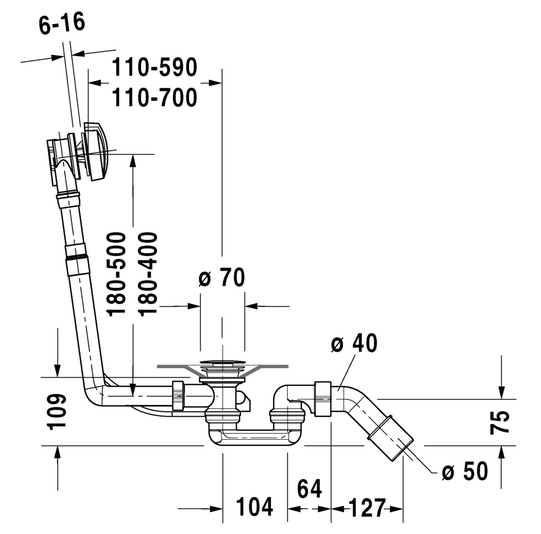 Komplet af- og overløbssæt til Duravit D-Code badekar.