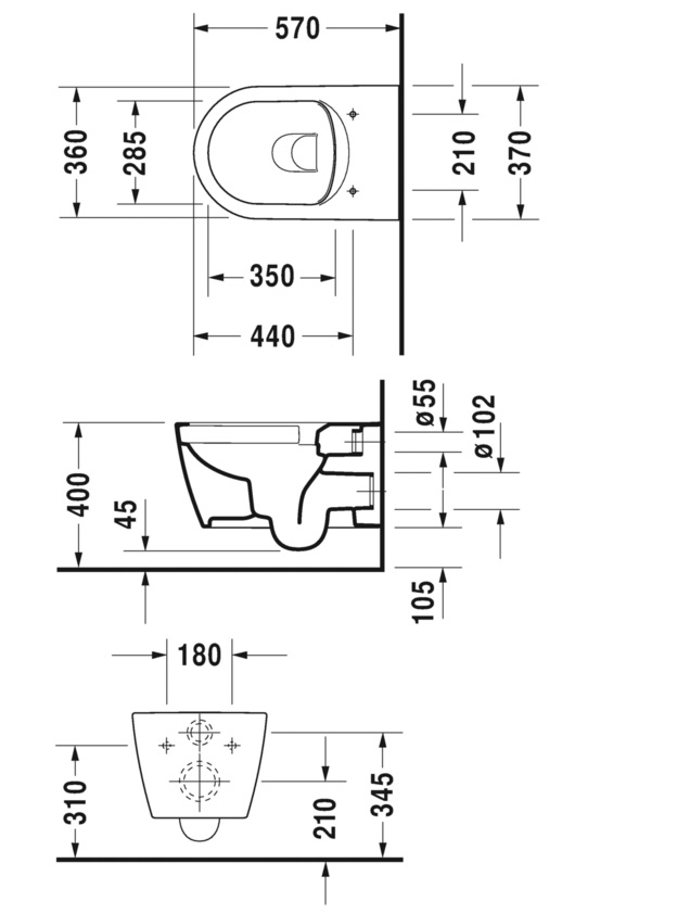 Duravit Me by Starck Rimless væghængt toilet m/wondergliss Duravit Me toilettet er designet af den hæderkronede designer Philippe Starck, som med stor succes har designet toiletter for Duravit gennem mange år. Toilettet er designet således at monteringsbeslagene er skjult og toilettet er desuden uden skyllerand (rimless), hvilket gør skålen mere hygiejnisk. Foruden dette er skålen overfladebehandlet (wondergliss), hvilket gør skålen mere smudsafvisende. Mål: 360 x 570 mm Husk at tilkøbe passende toiletsæde og en indbygningscisterne samt betjeningsplade/skylleknap hertil (se også relaterede produkter nedenfor). Montage på eksisterende indbygget cisterne: