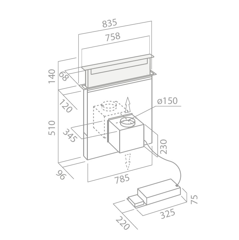 Eico Pandora N indbygget emhætte t/ bordplade - Sort Eico Pandora N, Emfang for indbygning i bordplade med intern motor.