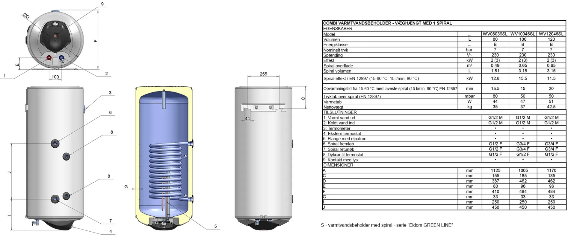 Eldom Combi varmtvandsbeholder 80 L - Væghængt med 1 spiral