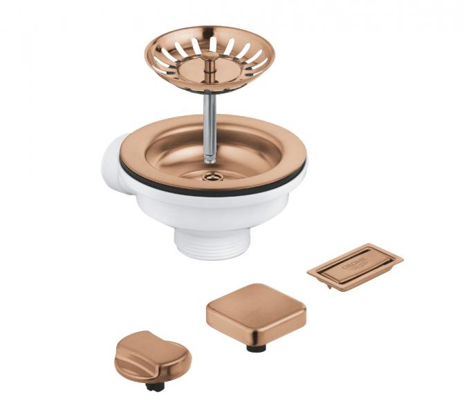 Grohe afløbssæt til køkkenvask inkl. drejeknap - Børstet warm sunset Sæt prikken over i'et og match dit afløb og excenterbetjening med dit Grohe køkkenarmatur i børstet warm sunset. Specifikationer: