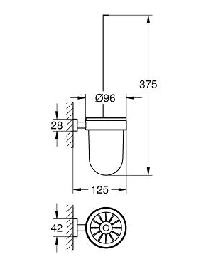Grohe Essentials Cube toiletbørste til væg En toiletbørste er nødvendig på ethvert badeværelse. Synderligt interessant er den ikke, men derfor kan den godt være dekorativ at have på badeværelset alligevel. Grohe Essentials Cube toiletbørste har et stilrent design og en fin udformning. Den bliver tilmed løftet op fra gulvet ved at hænge på væggen. Det giver med det samme et ryddeligt indtryk! Grohes toiletbørste holder til at blive brugt år efter år - det eneste der skal udskiftes er børstehovedet. Det er muligt at købe løse toiletbørstehoveder i hvid og sort. Se relaterede varer. Specifikationer: