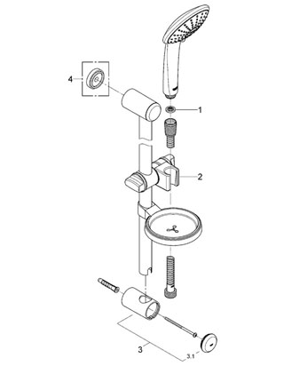 • GROHE FastFixation (øvre beslag kan justeres for tilpasning til eksisterende borehuller)