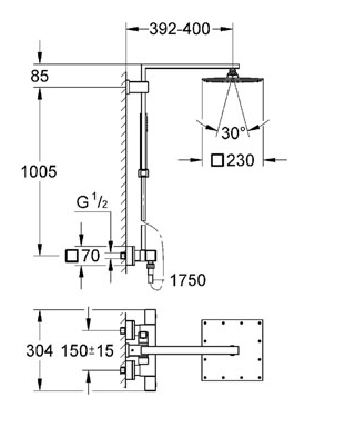 GROHE Euphoria Cube XXL 230 brusesystem med termostat