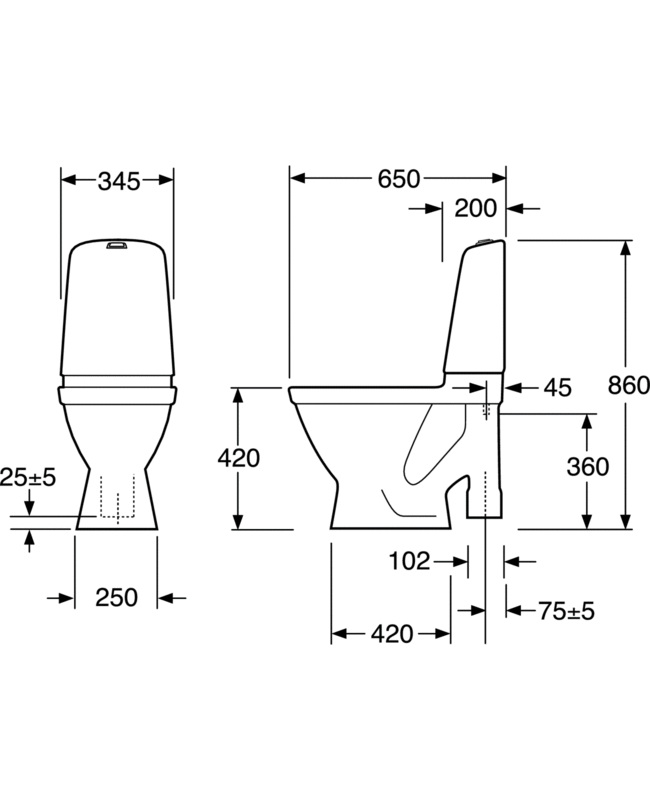 • Fremstillet i hygiejnisk, holdbart og tætsintret sanitetsporcelæn.