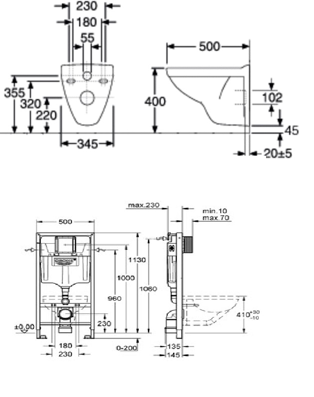 • Grohe frontbetjent indbygningscisterne på 113 cm