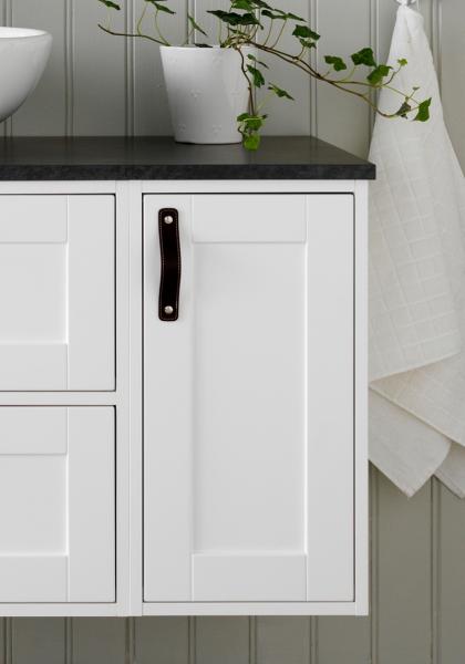 Hafa Eden er et klassisk designet møbel med velforarbejdede detaljer. Skabet til håndvasken kan kombineres på forskellige måder og med forskellige håndtag.