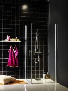 Når bruseafskærmningen ikke bruges, kan dørene svinges indad for at spare plads.