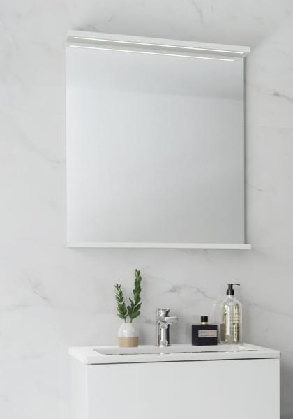 • Spejl med funktionel belysning med indbygget LED-profil eller LED-spot med varmt hvidt lys.