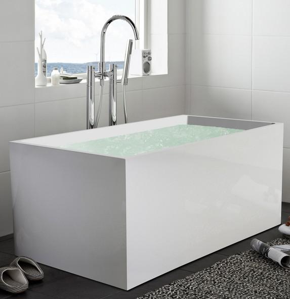 Fritstående designbadekar med lige, elegante former. I ekstra stabil, farvebestandig sanitetsakryl. Overfladen har ingen samlinger, hvilket gør karret nemt at rengøre. Justerbare fødder. Badedybde 460 mm.