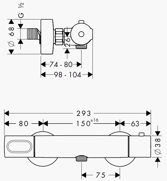 Centerafstand 150 +/- 16 mm