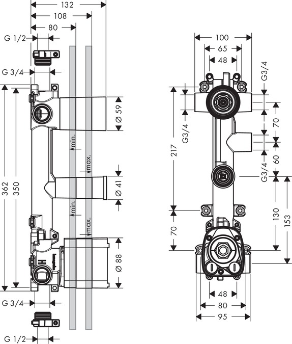 montering: fungerer samtidig i direkte forbindelse som vandføring hhv. montering med præcise mål
