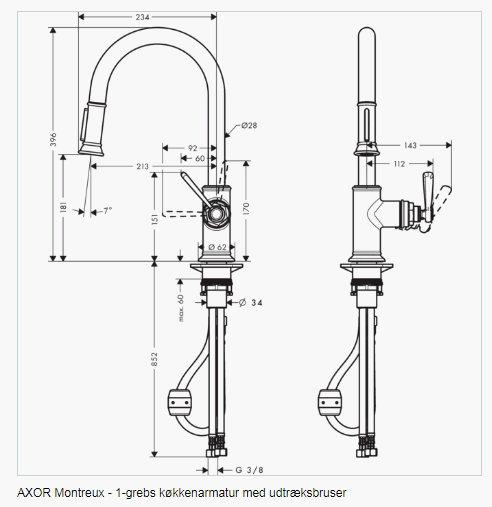 brusestråle aflåselig, strålereturstilling via tryk på knap