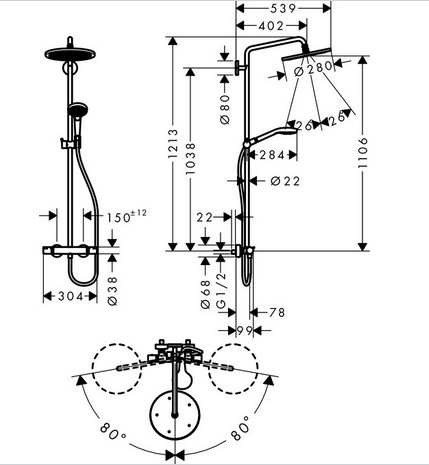Hansgrohe Croma Select AIR 280 ShowerpipeHansgrohe Croma Select AIR 280 ShowerpipeHansgrohe Croma Select AIR 280 Showerpipe