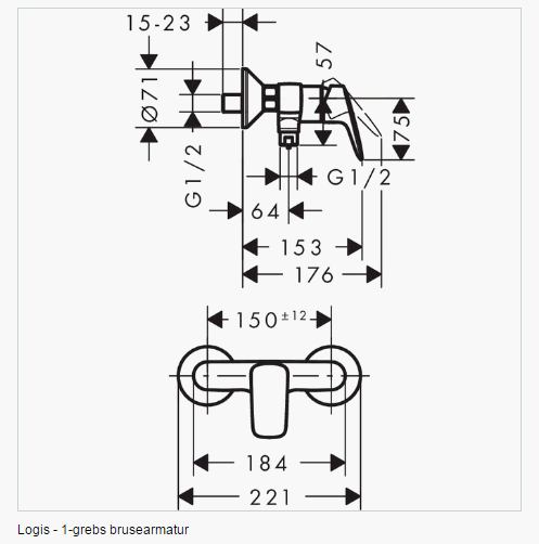 1-grebs brusearmaturet Logis fra hansgrohe er et tidløst, smukt og komfortabelt frembygget armatur til vægmontering. Da brusearmaturet er designet til frembygget installation og let kan tilsluttes med S-tilslutningerne (størrelse G1/2), er det særligt velegnet til renovering. Logis-armaturernes SoftCube-design skiller sig klart ud med flotte, store kromflader.