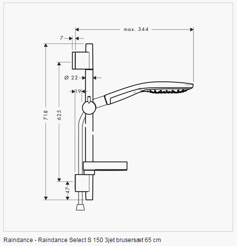 • består af: håndbruser, bruserstang, bruserslange, glider, sæbeskål