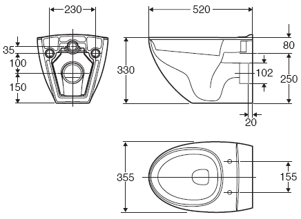 Man kan fint bruge dette væghængte toilet på en eksisterende indbygningscisterne. Man skal blot sikre, at boltafstanden (se måltegning) er den samme som på den skål der er monteret i forvejen.