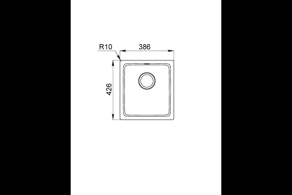 Enkeltvask med strainer. Leveres med vandlås. Til underlimning. |