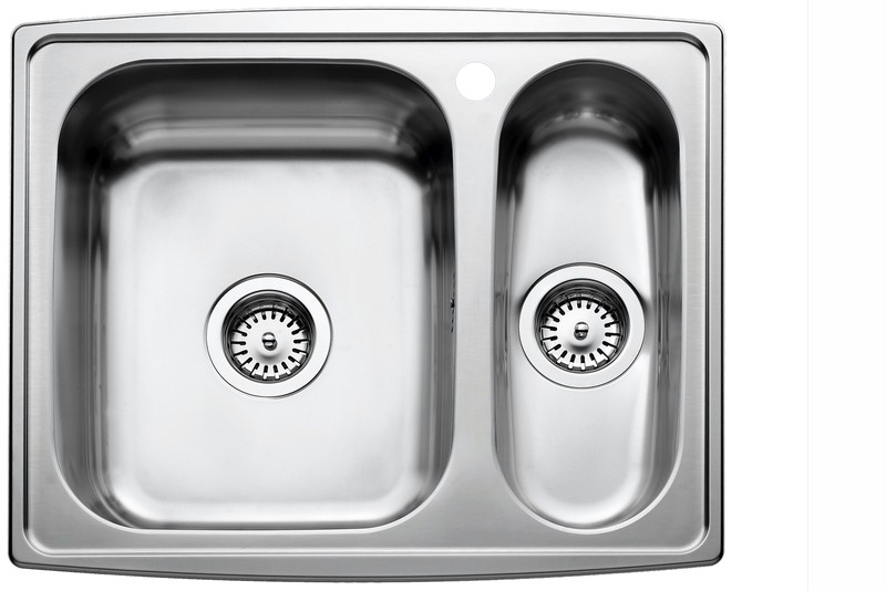 Køkkenvask med stor vask til højre og lille kumme. Til nedfældning. Billede viser med vask til venstre |
