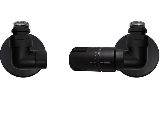 Beskrivelse af Kriss Corner Rumtermostat - fremløb højre - Mat sort på vej.