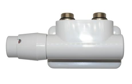 KRISS Twin RTL, 1/2" vinkelløbende ventilsæt med manuel regulering til 50 mm centerafstand, lakeret hvid (RAL9016). Ventilsættet er inkl. front-dækkappe, 1/2" tilslutningsrør samt rosetter til væggen – alt i ét varenummer. OBS: fremløb I højre side. Ikke vendbar. |