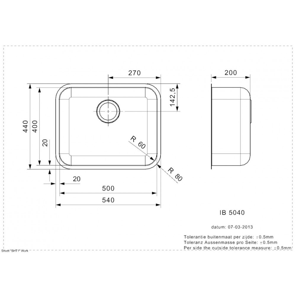 Rustfri syrefast stålvask uden hanehul og overløb.