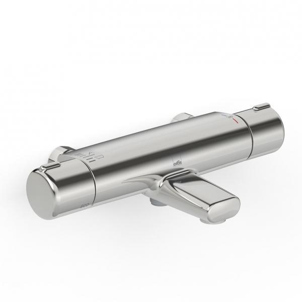 Kar- og brusertermostat. Temperaturreguleringen er udstyret med skoldningssikring ved 38°C samt mængderegulering med integreret omskifter og EcoFlow.