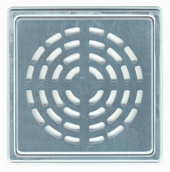 Design rist og ramme i rustfri børstet stål. Rammen skal altid have forbindelse med gulvafløbet og fuges tæt, BRUG ALDRIG SILICONE