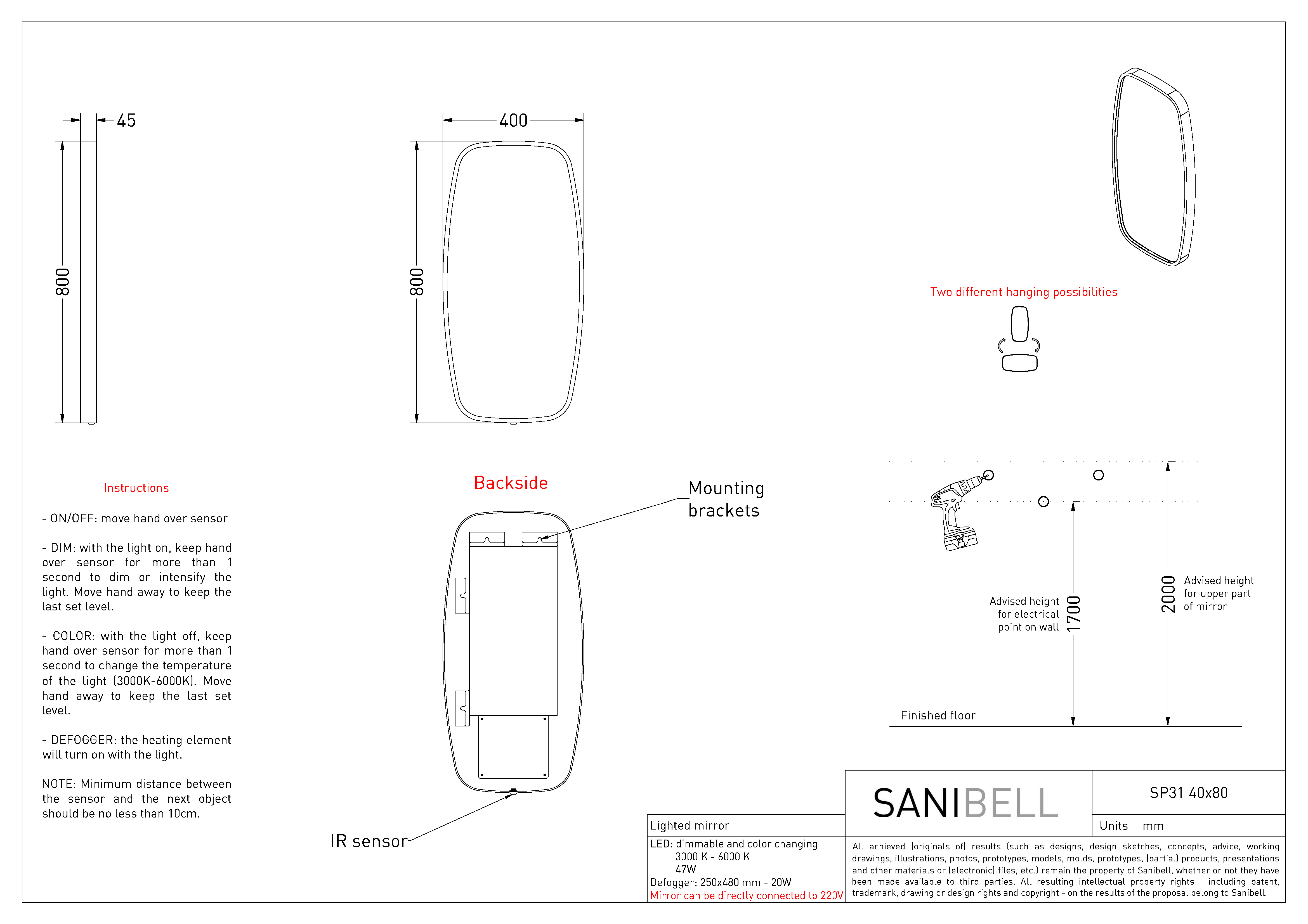 Sanibell Ink SP31 spejl m/lys, varme og sensor 40 x 80 cm - Gunmetal Superellipse-formet spejl fra Sanibell Ink med indbygget lys i rammen. Det eksklusive spejl har desuden indbygget memory funktion, så det husker forrige indstilling. Juster både lysets farve og styrke ved hjælp af den smarte touch-free sensorkontakt. Når du vælger dette spejl, kan du uden problemer bruge dit spejl, selv efter et langt, varmt bad, for spejlet har indbygget varme og er derfor dugfrit. Det rektangulære spejl kan vendes, og dermed monteres både lodret og vandret. Spejlet leveres i 6 flotte farver, så du kan fuldende indretningen på badeværelset med et spejl, der matcher både vandhane og badtilbehør. Specifikationer:
