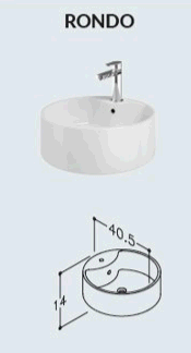 Strømberg Rondo Ø40 fritstående bowlevask - 1 hanehul - Med overløb Specifikationer:
