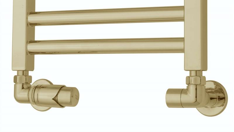 Beskrivelse af TVS returtermostatventilsæt poleret messing - Venstre model på vej.