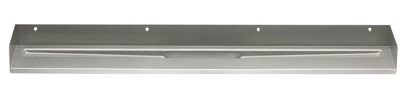 Afløbsarmaturet har tre vægflanger og en gulvflange, og er formgivet ud af et stykke kraftigt 1,5 mm rustfrit stål med bejdset overfladefinish.
