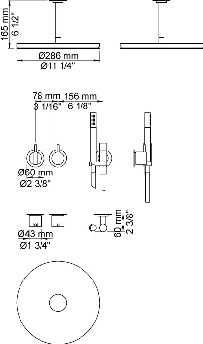 2471-061AAP = Greb NR21, omskiftergreb NR24G, håndbruser og holder for håndbruser med kontraventil 070, loftmonteret hovedbruser 060A, 2 stk. 60 mm dækrosetter 001, 2001.