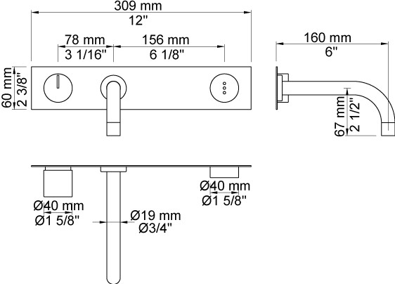 Vola Indbygningsblander til berøringsfri betjening Dækplade Krom 16 ½''RG |