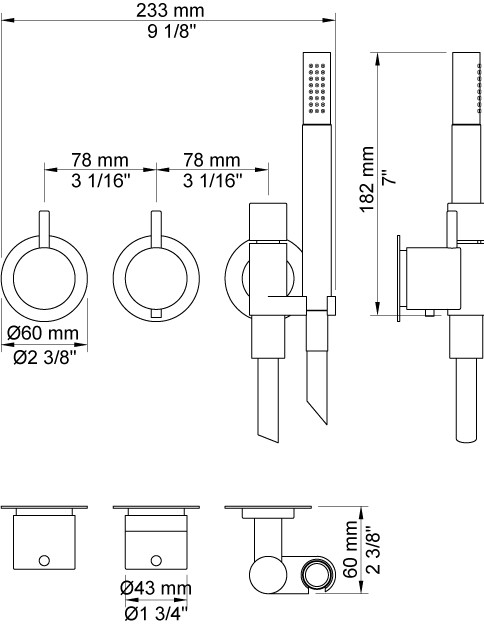 Vola 5171R Brusetermostat m/håndbruser - Krom