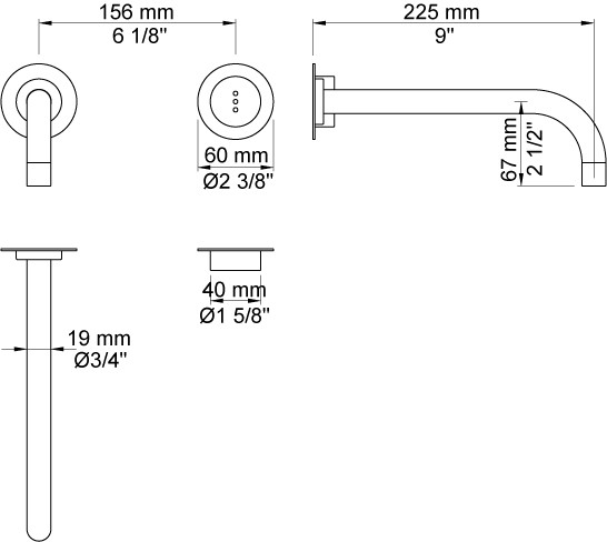 Vola Indbygningsventil til en slags vand, til berøringsfri betjening Fast udløb, 225 mm, ø19 mm Rosetter Krom 16 ½''RG